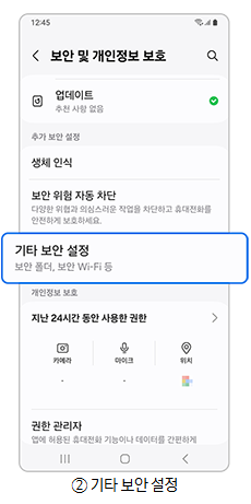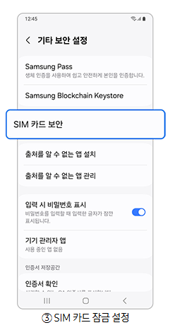 2단계) 기타 보안 설정을 선택 후 SIM 카드 보안을 선택합니다.