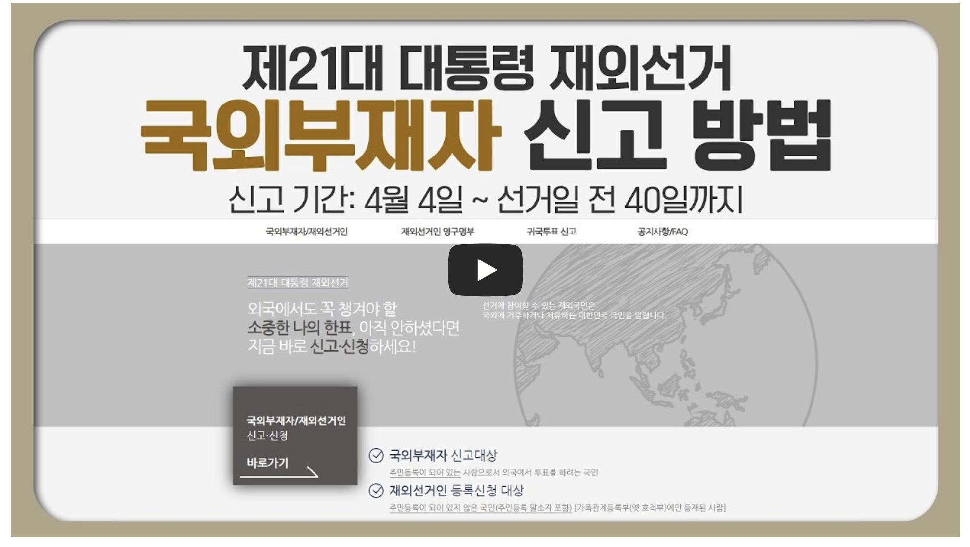👉 중앙선거관리위원회 국외부재자/재외선거인 신고.신청 바로가기