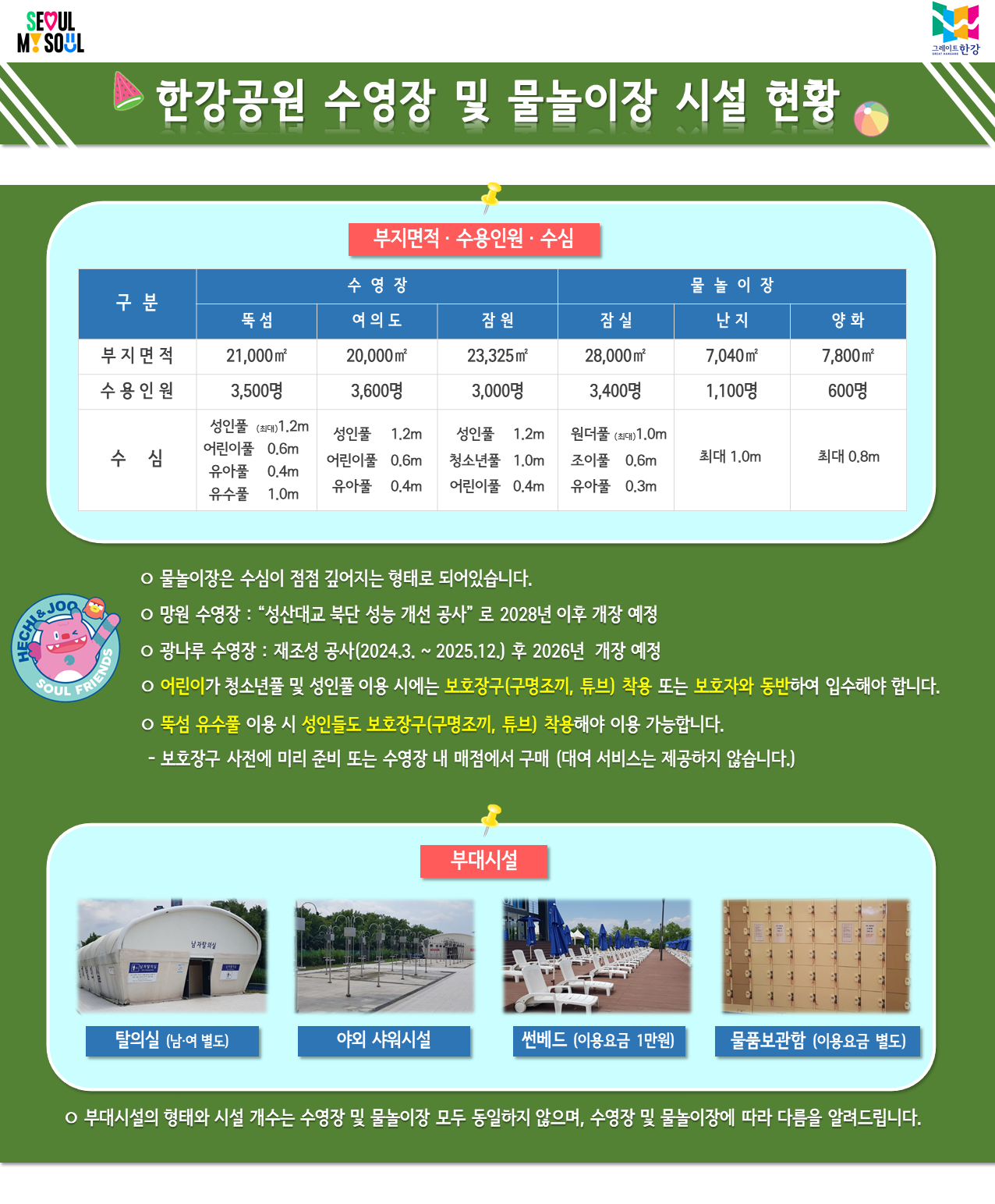 - 망원 수영장: 성산대교 공사로 인해 미개장